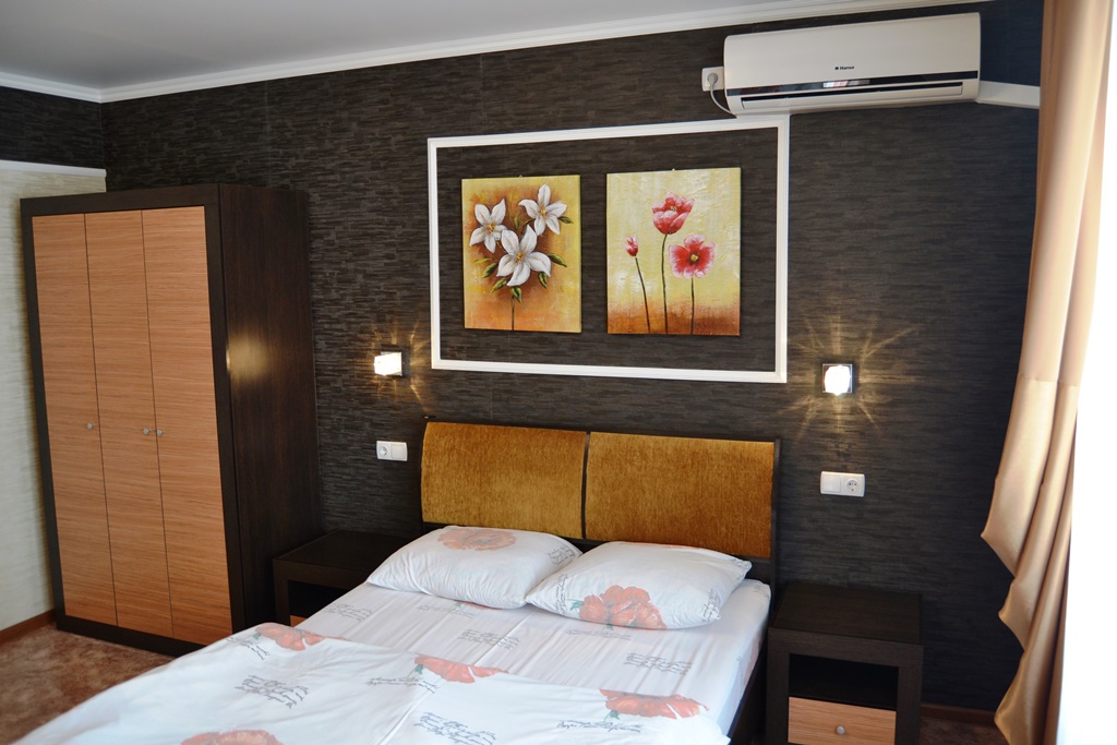 Широкая двуспальная кровать, диван, письменный стол, кондиционер, LCD-телевизор в каждой комнате, шкаф для белья, бесплатный WI-FI интернет;